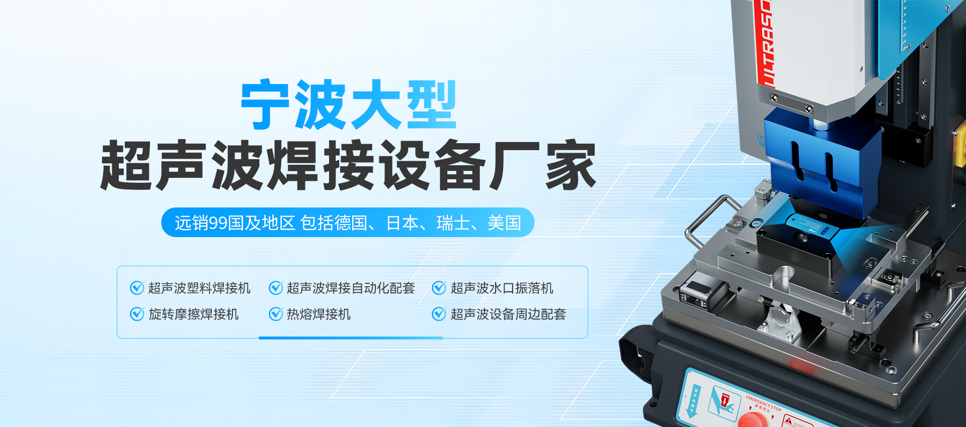 寧波鄞州重信機(jī)械設(shè)備有限公司LINGKEULTRASONICS靈科超聲波寧波服務(wù)中心,從事超聲波設(shè)備的生產(chǎn)開發(fā)、銷售及維修服務(wù),產(chǎn)品包括伺服超聲波塑焊機(jī)、超聲波焊接自動化配套、超聲波水口振落機(jī)、旋轉(zhuǎn)摩擦焊接機(jī)、熱熔焊接機(jī)、超聲波清洗機(jī)、超聲波模具等,并可為客戶定制設(shè)計各類非標(biāo)機(jī)寧波鄞州重信機(jī)械設(shè)備有限公司。